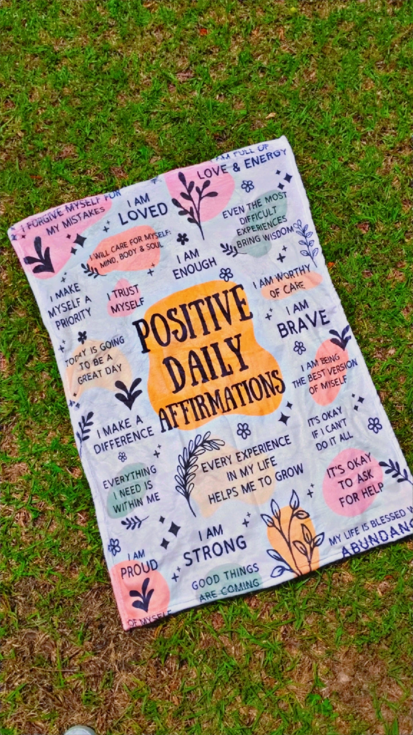 28inch × 40inch Positive Affirmations Kid's Blanket, made to motivate and inspire positive thoughts and lifestyles for your little ones.